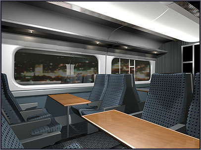 AMTRAK 2nd CLASS TRAIN CAR INTERIOR DESIGN - 3D Modeling - Photorealistic Rendering - Client: Vignelli Associates, New York, NY